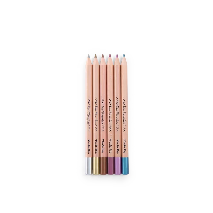 Le set de 6 crayons métallisés Les Rosalies de Moulin Roty apporte une touche brillante et élégante aux dessins des enfants. Parfaits pour colorier, décorer et laisser libre cours à la créativité, ces crayons transforment chaque création en véritable petite œuvre lumineuse.