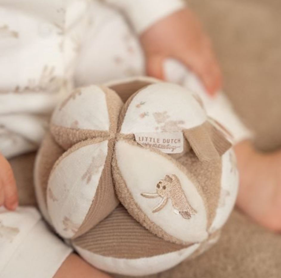 Essaie de saisir la balle ! Avec sa forme intéressante, cette balle de préhension offre un formidable défi à votre bambin. Les différents motifs et textures des faces invitent à saisir et à explorer. La balle est facile à saisir pour de petites mains et le joyeux son de cliquetis de la clochette récompense les efforts de votre bébé.