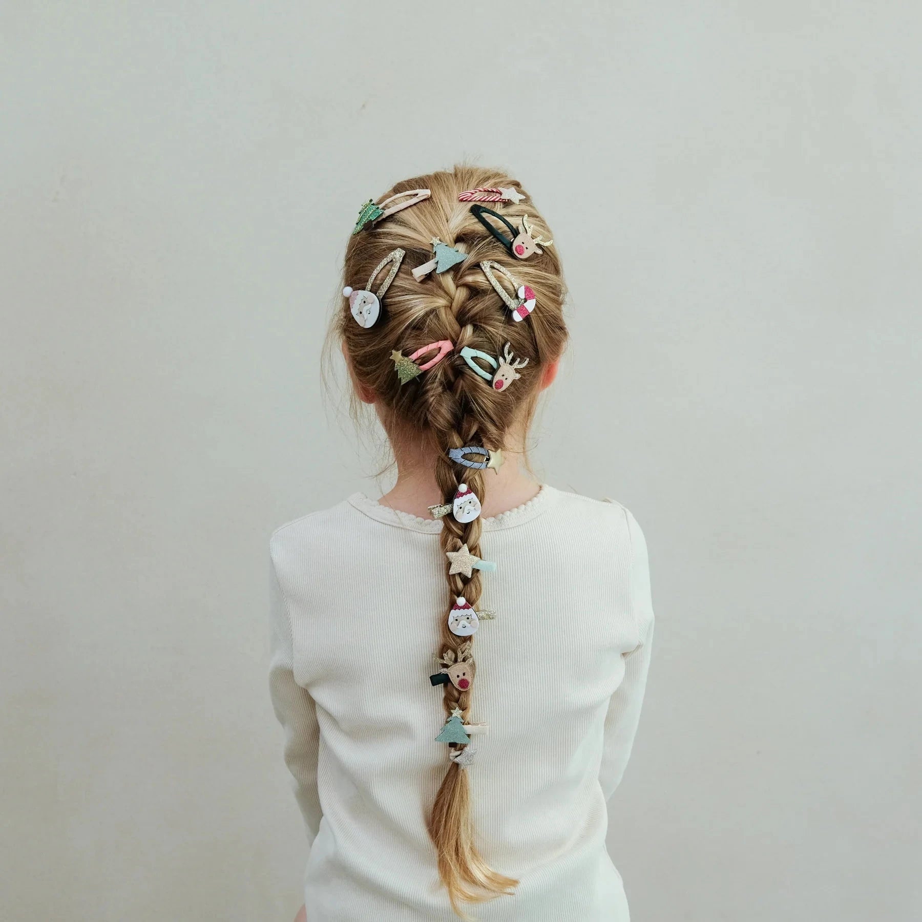 Un assortiment de 5 petites pinces pleines de magie, dans une palette de couleurs de Noël pétillante et joyeuse — parfaites pour ajouter une touche de fête et de bonne humeur à chaque coiffure 🎄