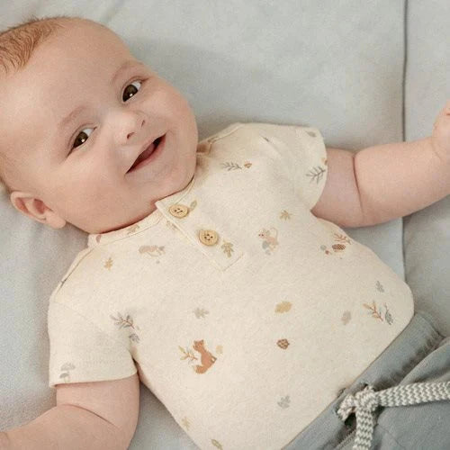 Jouez, dormez et explorez en tout confort dans cette grenouillère à manches courtes, un véritable incontournable pour la garde-robe de votre nouveau-né. Le mélange couleur sable est orné du joyeux motif Forest Nature qui ajoute une touche de magie à chaque tenue. Les boutons à l'aspect bois lui confèrent un charme rustique. Fabriqué en coton biologique doux, il assure confort et douceur pour la peau de votre bébé. Cette grenouillère se combine magnifiquement avec chaque article de la collection Forest Friends, vous permettant de mixer et assortir à l'infini. Disponible en tailles 50, 56, 62, 68 et 74.