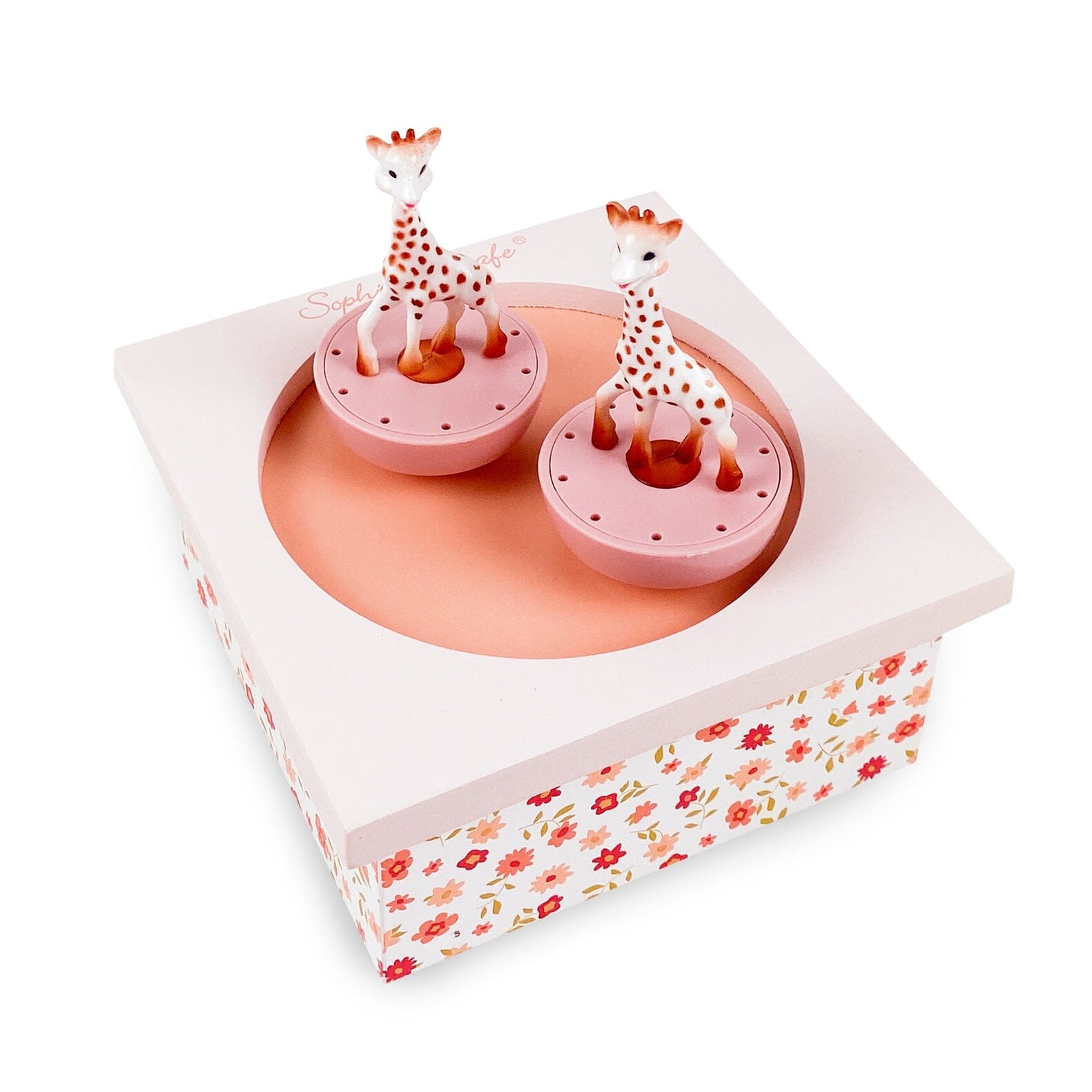 Boîte à musique féérique : deux figurines Sophie la Girafe© prennent vie et tournent ensemble au rythme de la musique.