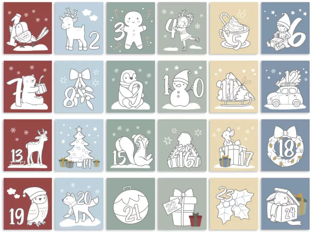Rendez le compte à rebours de Noël encore plus amusant avec ce calendrier de Noël ! Ce calendrier joyeux contient 24 pages de coloriage uniques. Qu'il s'agisse d'un adorable Père Noël, d'un sapin de Noël étincelant ou d'un bonhomme de neige douillet, chaque page de coloriage est amusante et ajoute à l'atmosphère festive. Mettez-le dans un endroit spécial et profitez des belles créations avec votre enfant pendant cette période magique de l'année.