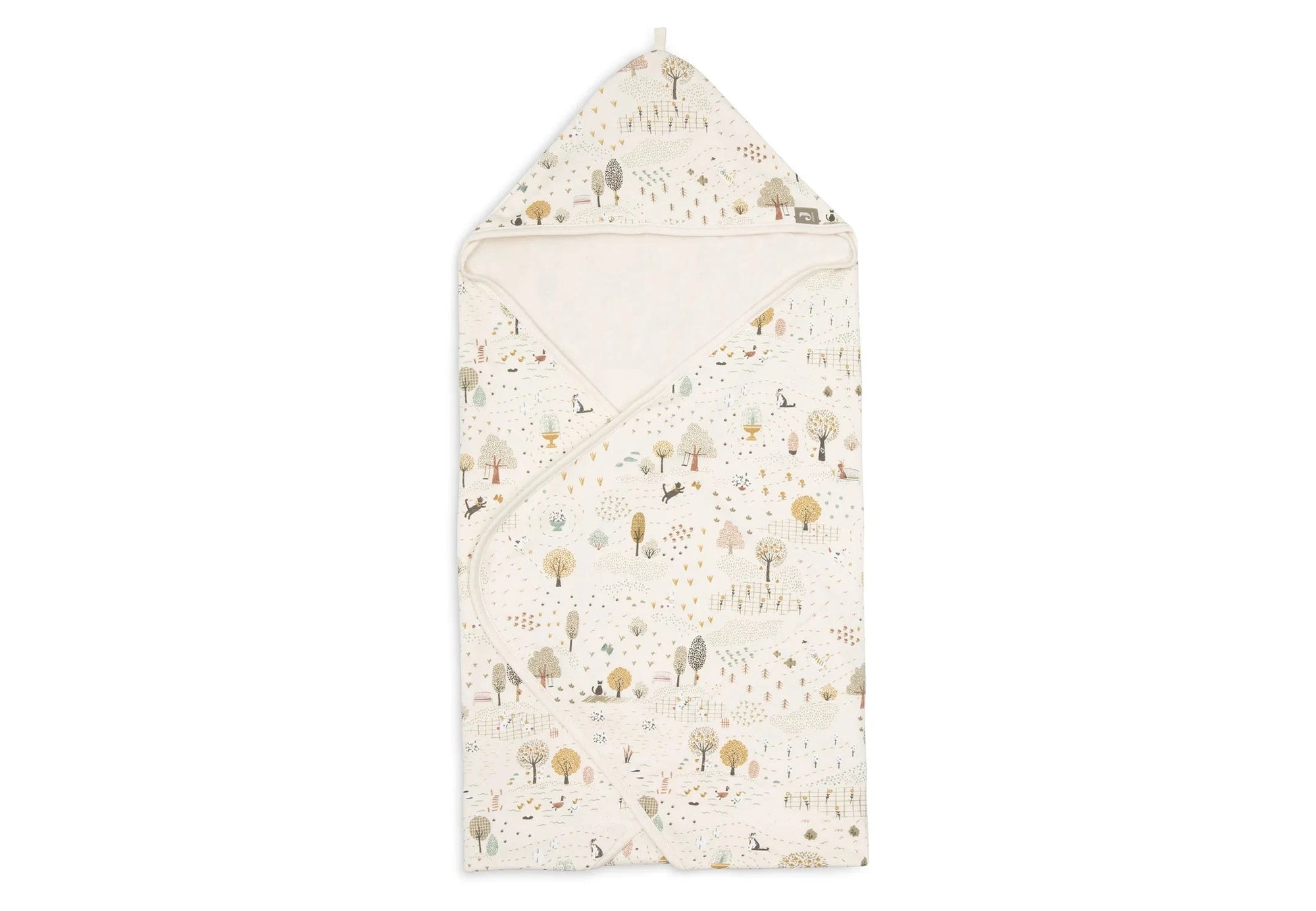 Cette cape de bain douce est parfaite pour sécher votre bébé après le bain. L'extérieur est en jersey doux avec un joli imprimé Tiny Park et l'intérieur en tissu éponge doux couleur avoine offre un confort optimal. Avec ses dimensions de 75 x 75 cm, elle est idéale pour envelopper votre tout-petit après un bon bain.