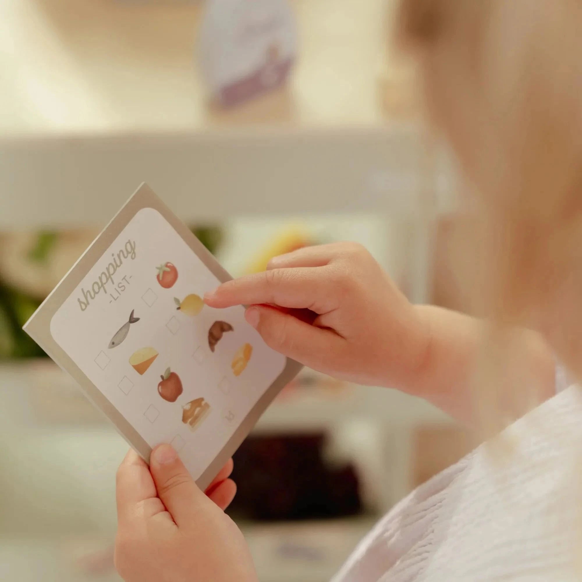 Faire les courses devient une fête ! Avec ce chariot de supermarché en bois, vous avez tout ce dont vous avez besoin à la maison. Grâce à l'espace de rangement spacieux, toutes vos courses y rentrent, même si la liste est longue. La pince en bois assure que votre liste de courses reste bien en place, pour que vous n'oubliiez rien. Le set comprend divers produits d'épicerie et un sac de courses, pour que vous puissiez commencer immédiatement. Le chariot est décoré avec une jolie illustration à l'avant, rendant le jeu encore plus amusant. Vous voulez vivre l'expérience ultime de shopping ? Combinez le chariot avec le stand de marché et profitez de courses sans fin !