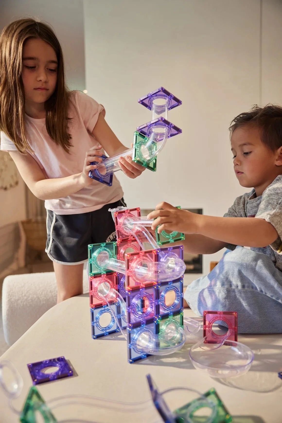 Pensé pour le jeu libre et évolutif, ce coffret permet de construire des structures infinies, seul ou à plusieurs, tout en apprenant les bases de la gravité, de la vitesse et du mouvement.