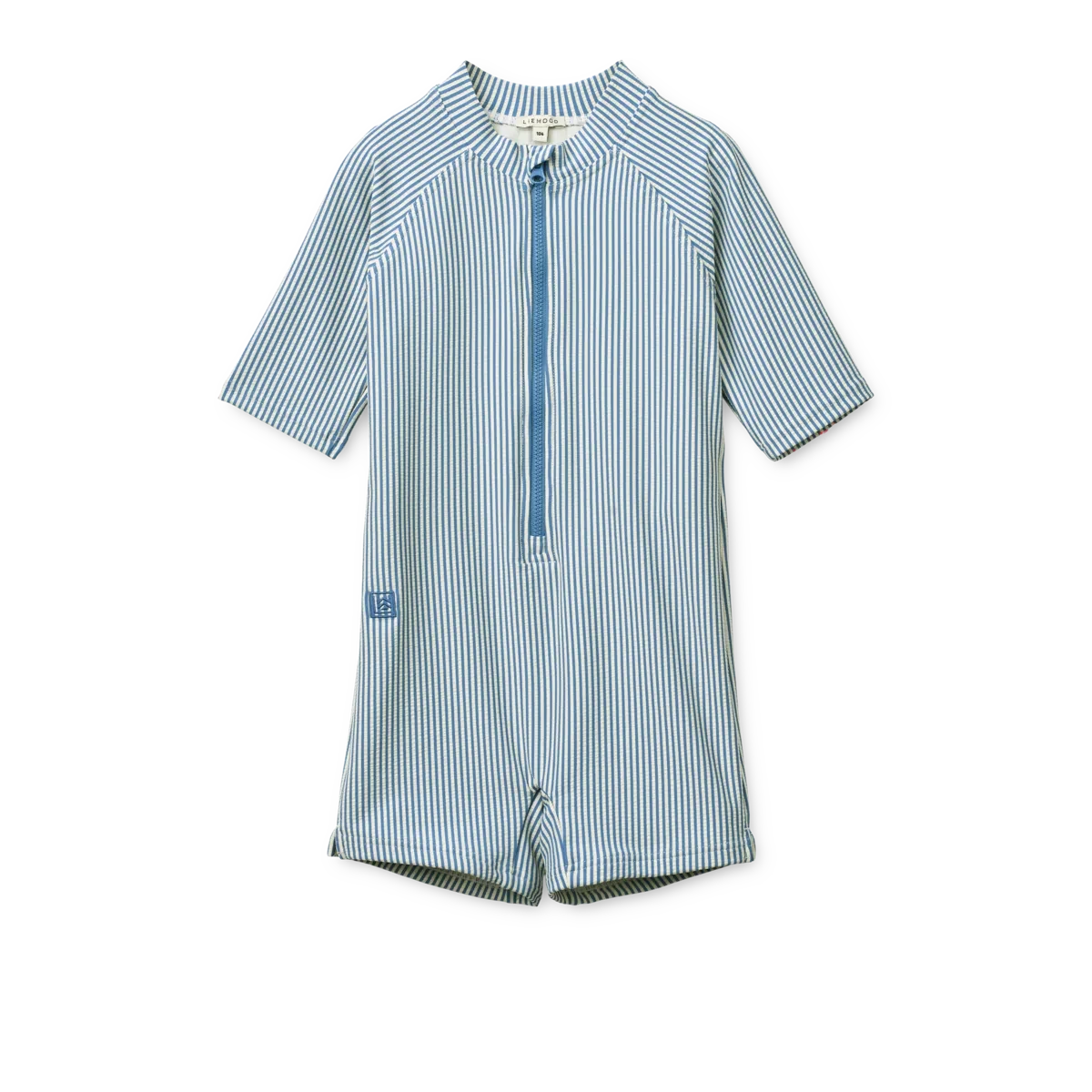 Laissez votre enfant jouer au soleil avec le maillot de bain Seersucker Max à manches courtes et col montant.