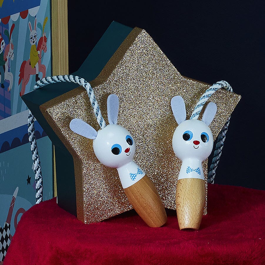Une adorable corde à sauter pour sauter en l'air comme un lapin pendant la récré. Design Ingela P. Arrhenius. Bois massif laqué 100% made in France, Corde réglable