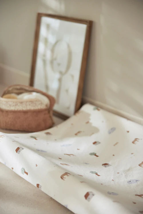 Housse de matelas à langer ferme est une housse douce, enveloppant complètement le matelas à langer. Fait de 60% coton et 40% acrylique. Le look doux et la belle couleur unie rendent cette housse de matelas à langer compatible avec tout.