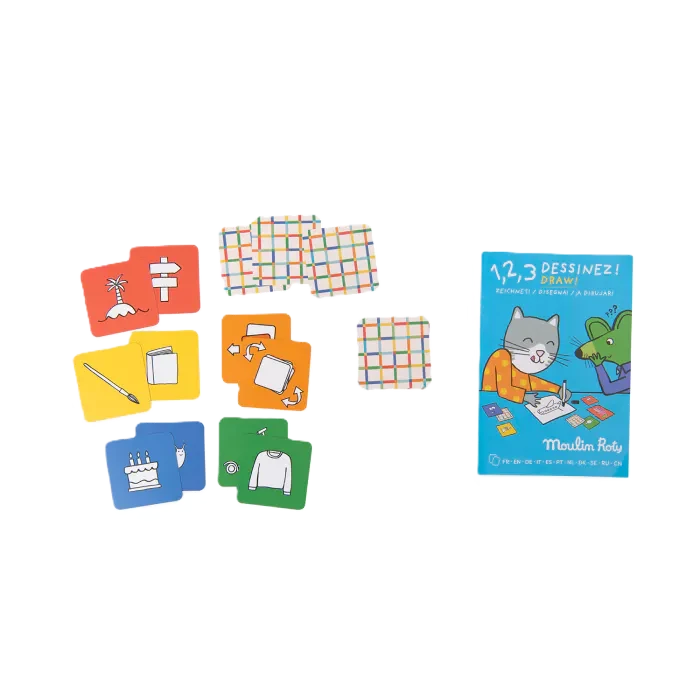 Le jeu 1, 2, 3… Dessinez les Loufoques de Moulin Roty est un jeu de dessin joyeux et décalé qui promet des fous rires en famille ou entre amis. Accessible et ludique, il invite petits et grands à laisser parler leur imagination et leur sens de l’observation.