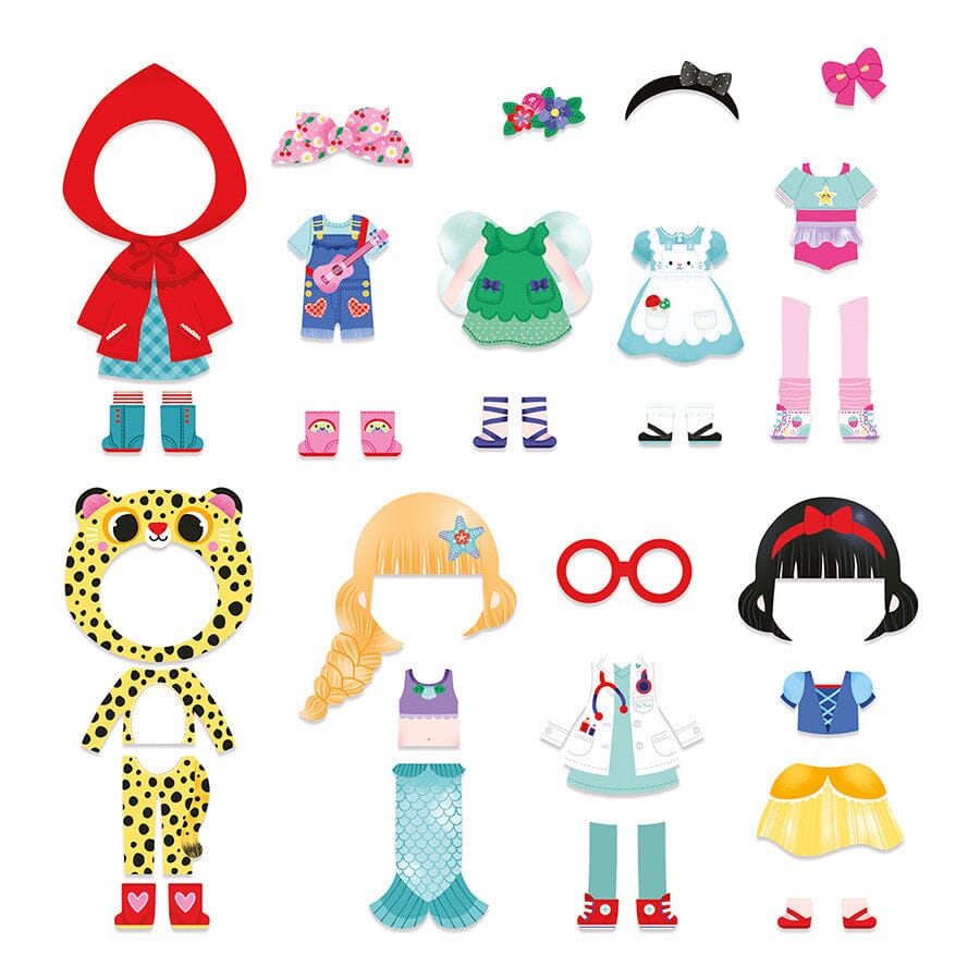 Habillez Mia, une magnifique poupée magnétique en bois que vous pouvez habiller à votre guise. L'ensemble contient 36 articles et une poupée magnétique de 22 cm de haut. À partir de 3 ans.Avertissement : Jouet testé en laboratoire, garantissant sa conformité à la directive 2009/48/CE pour un enfant à partir de 3 ans. ATTENTION ! Ne convient pas aux enfants de moins de 3 ans. Petits éléments. Danger d’étouffement.