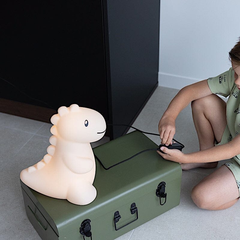 dinosaure Jéroom mais en version lampe, qui est jolie à la fois lorsque la lumière est allumée et lorsqu'elle est éteinte!