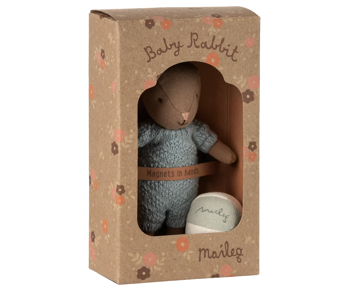 Grâce à son format micro, ce lapin est parfaitement adapté aux petites mains et aux maisons de poupées Maileg. Il encourage le jeu libre, la narration et les scénarios du quotidien : dormir, se promener, partager un moment en famille… Des heures de jeu doux et créatif en perspective.