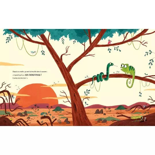 Ce matin, ça sent la trouille dans la savane ! Les animaux sont inquiets : il paraît qu’il y a un nouveau… Et qu’il a des oreilles férocement pointues, Et des yeux terriblement patatés, Aïe aïe aïe, c’est sûr, il va nous boulotter ! Un récit rythmé dans lequel Christine Naumann-Villemin bouscule la couardise et les préjugés et orchestré avec talent par la dessinatrice Ana Duna, et sa troupe d’animaux délicieusement ahuris. Le lauréat du prix des Incorruptibles 2021-2022, dans la catégorie "Maternelles" !