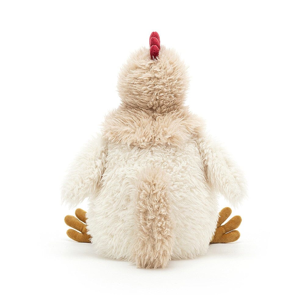 Le poulet Whitney est tout simplement magnifique - duveteux, gaufré et délicieusement doux ! Notre charmante poule a une superbe collerette d'avoine, des pieds et un bec en suède dorés et un ventre dodu et enneigé. Avec sa crête et sa crécelle écarlates, c'est la plus belle des poules !