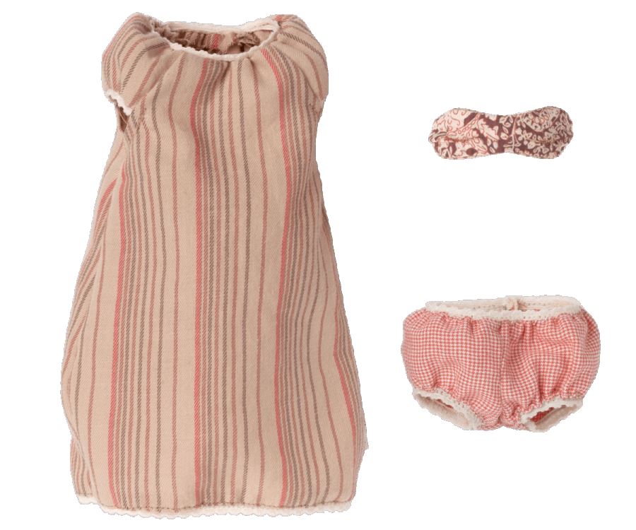 Cette souris de taille moyenne est habillée d'une robe de chambre et porte un masque pour les yeux pour une bonne nuit de sommeil!